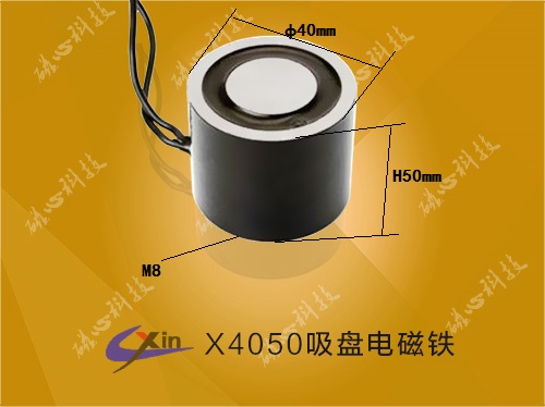 X4050微型吸盤式電磁鐵分兩種:一種為通電有磁性,斷電消磁,這是普通的吸盤式電磁鐵。