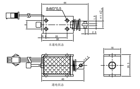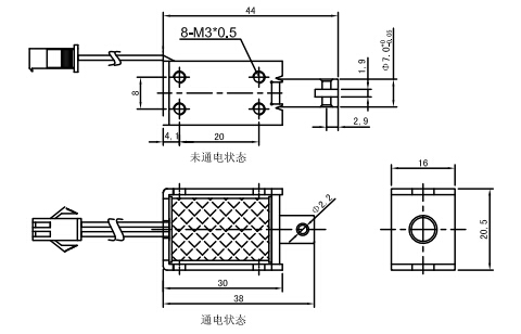 一、推拉電磁鐵U0730的尺寸圖紙: